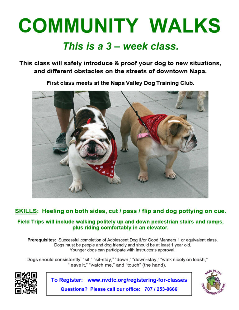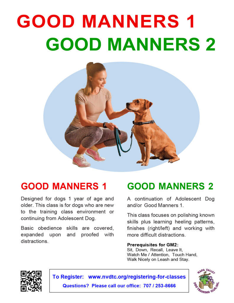 Napa Valley Dog Training Club also offers Rally and Scent Work classes. Call 707 253-8666 to learn more.